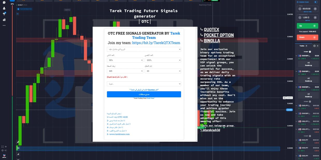 Revolutionize your binary options trading experience with our exceptional free signal generator. Designed to cater exclusively to the Quotex platform, our tool provides meticulously crafted signals for both the real and virtual markets. Say goodbye to guesswork and embrace data-driven decisions with our high-precision signals. Whether you're a seasoned trader or just starting out, our platform equips you with the insights needed to navigate the complexities of binary options trading with confidence. Start maximizing your potential and achieving your financial goals today!